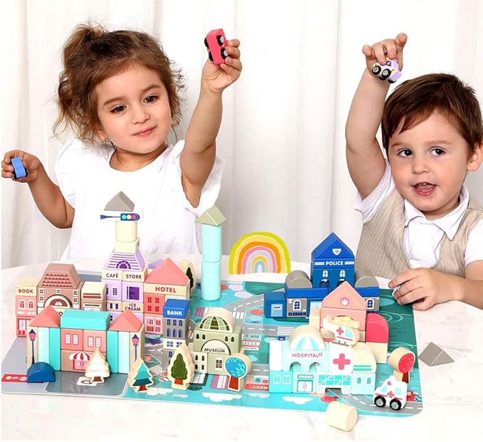 - Ideal Gift for Birthdays and Holidays:This wooden building blocks toy set allows kids to explore the world by creating something new with their own hands, and when they build the construction together with their friends, they will learn team collaboration.