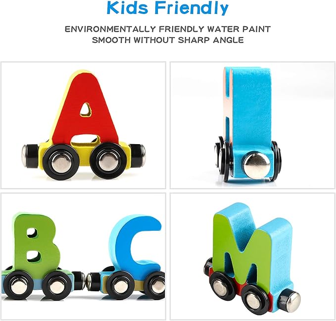 • Stronger Magnet: The magnets on our alphabet trains were carefully chosen and have been tested extensively to be stronger than those in other sets. This means more train cars can be connected together to make longer trains. 27 pcs wooden alphabet train compatible with other track toys.