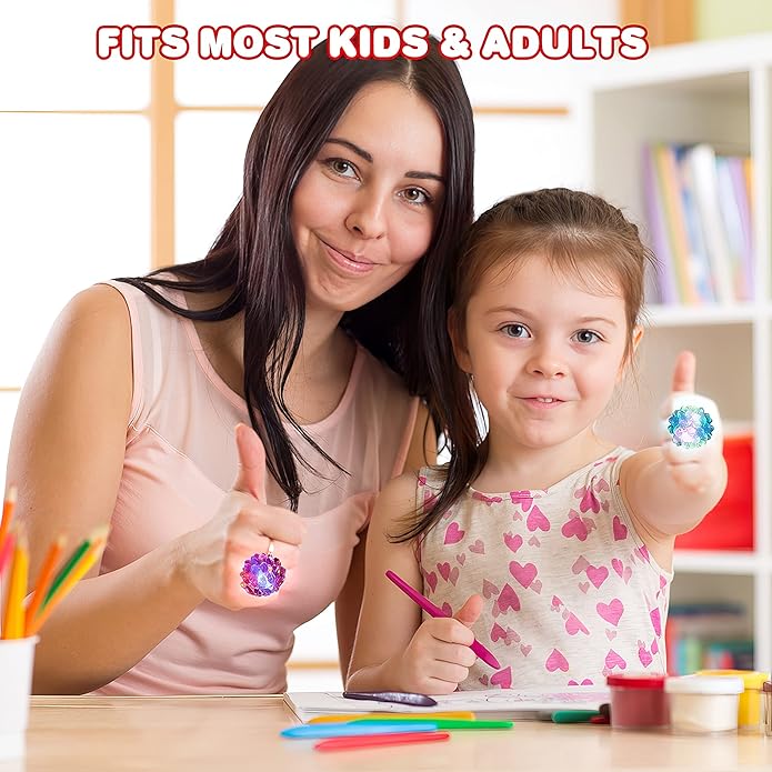 - FIT MOST KIDS: Little ones will relish the feel of the jelly-like material that makes rocking the LED rings a comfy affair. Each light-up ring measures 2” tall x 1” wide – the perfect size to act as Easter egg toy fillers or holiday stocking stuffers that ignite massive grins.