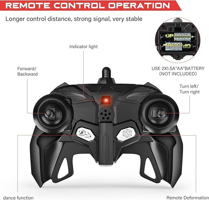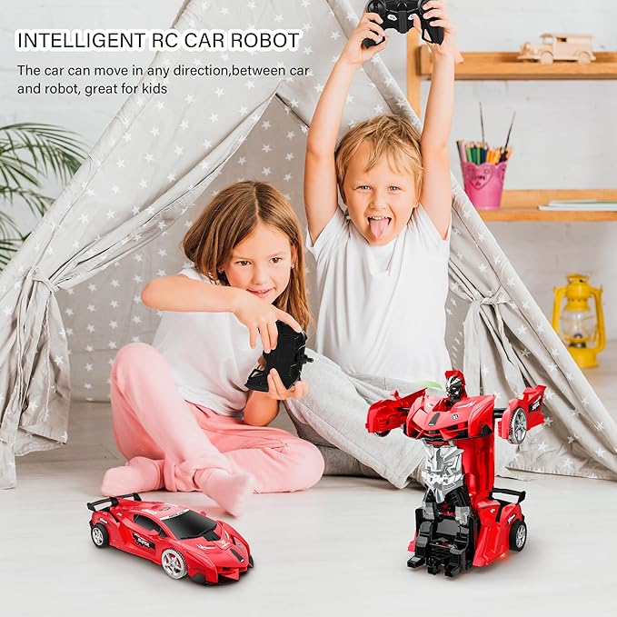 • Perfect Hobby Gift for Kids - Designed for transformer lovers and all kids who love cars, this RC car toy can be used as the best gift choice for Christmas or Birthday. The Rc cars is a perfect toy for boys and girls, keep children busy and fascinated with the transformation, being a hit on the birthday and other holiday parties.