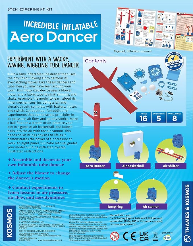 Thames & Kosmos Incredible Inflatable Aero Dancer STEM Experiment Kit | Make Your Own 1-Foot Tall Tube Dancer | Explore Air Pressure, Aerodynamics, Gears & Circuits | Hands-on Activities & Challenges