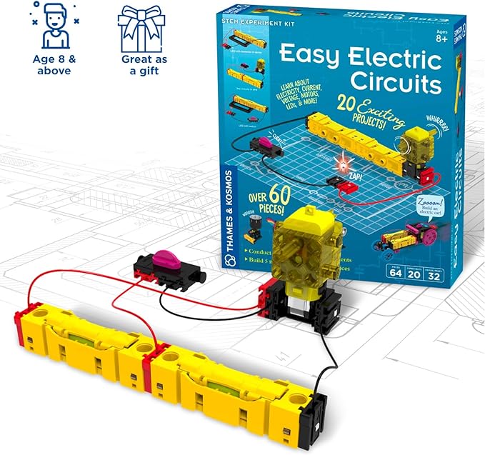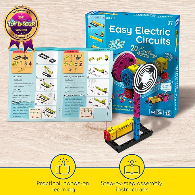 Thames & Kosmos Easy Electric Circuits STEM Kit | Essential Circuitry Set | 15 Experiments, 5 Motorized Models - Electricity, Current, Voltage, LEDs & More | Innovative, Easy-to-Use Building System