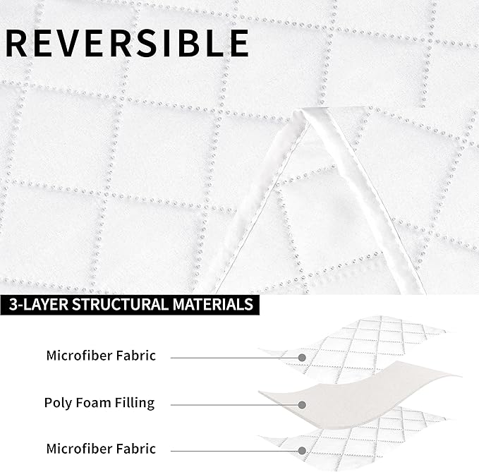 - HIGH QUALITY: Super durable 3-layers classic quilted fabric, water resistant thick microfiber, thick poly foam filling for extra comfort and softness. Two color options, double the use.