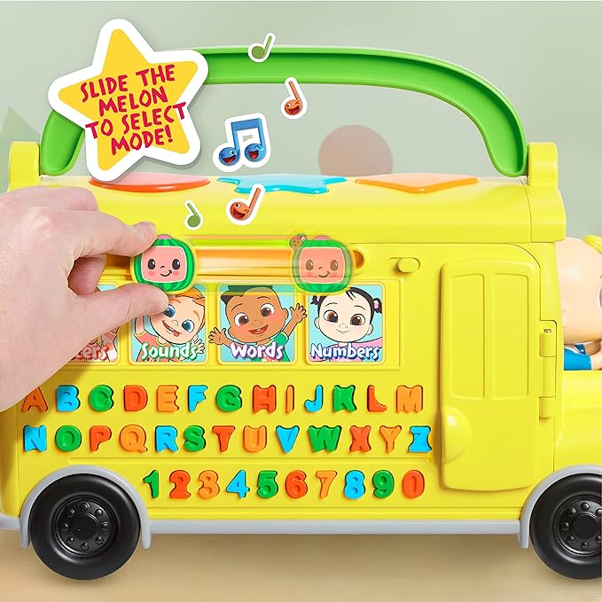 - This early learning school bus toy features four modes of educational play. Letters mode helps with letter recognition. Sounds mode helps with phonetic pronunciation. Words mode recites words beginning with that letter. Numbers mode helps with number recognition and counting.