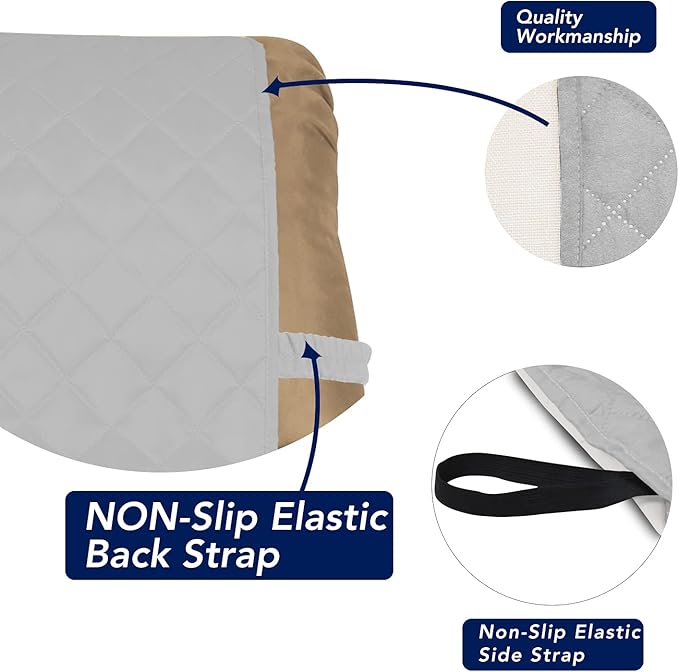 PureFit Reversible Quilted Sofa Cover, Water Resistant Slipcover Furniture Protector, Washable Couch Cover with Non Slip and Elastic Straps for Kids, Dogs, Pets (Small Recliner, Light Gray/Ivory)