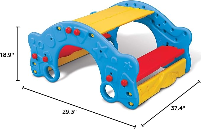 Grow'n Up Qwikflip Climber, 3-in-1 Multi Function 4-Seater Design: Picnic Table, Non-tilt Rocker, and Climbing Trainer, Easy Setup, no Tools Required, Ages 1.5+