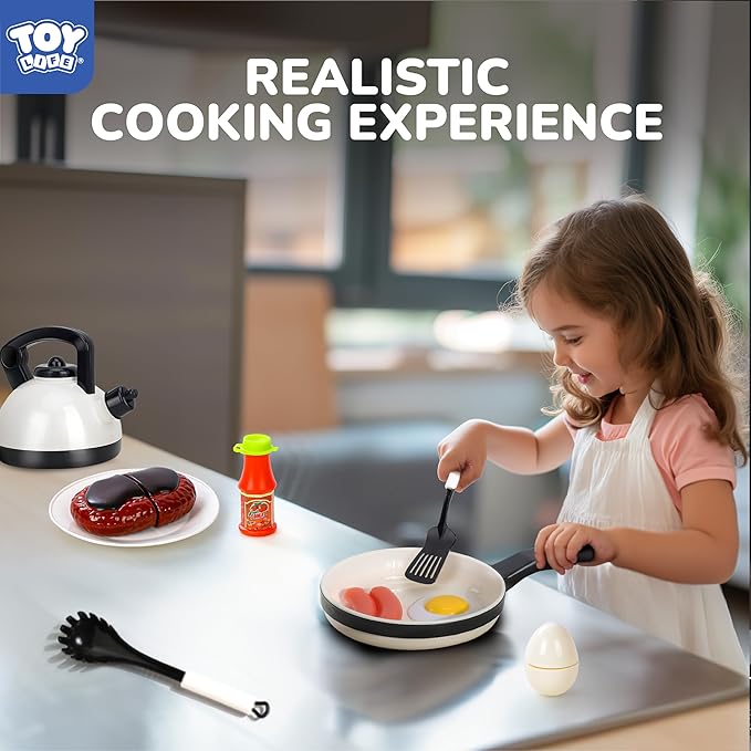 - 🍳 Perfect Early Educational Toys: Our kids cooking sets are a great tool for role-playing to learn life skills and help improve fine motor skills while improving cognitive abilities. Helps increase flexibility and stimulation by keeping kids away from TV and computers. At the same time, with this toy kitchen set parents can also interact with children to let them know how to cook safely and let your children become your little kitchen assistant.