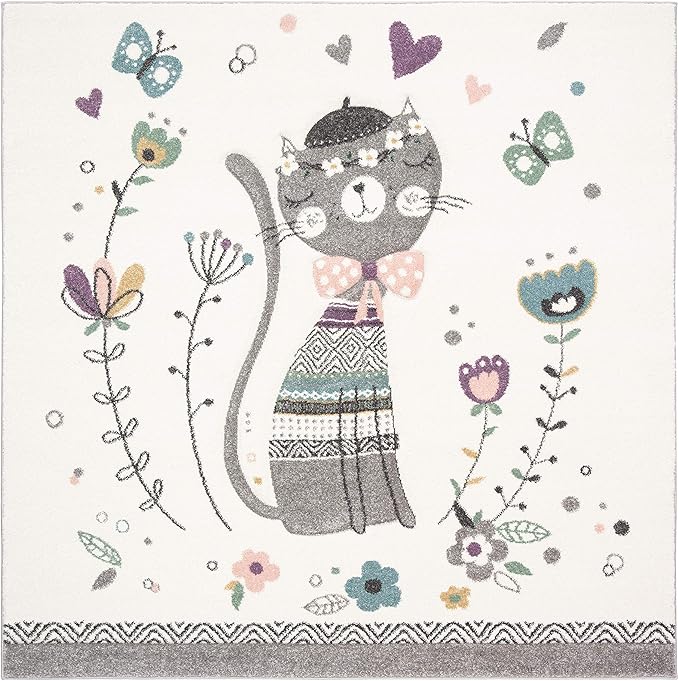 SAFAVIEH Carousel Kids Collection 8' Square Ivory/Pink CRK187A Cat Non-Shedding Nursery Playroom Area Rug