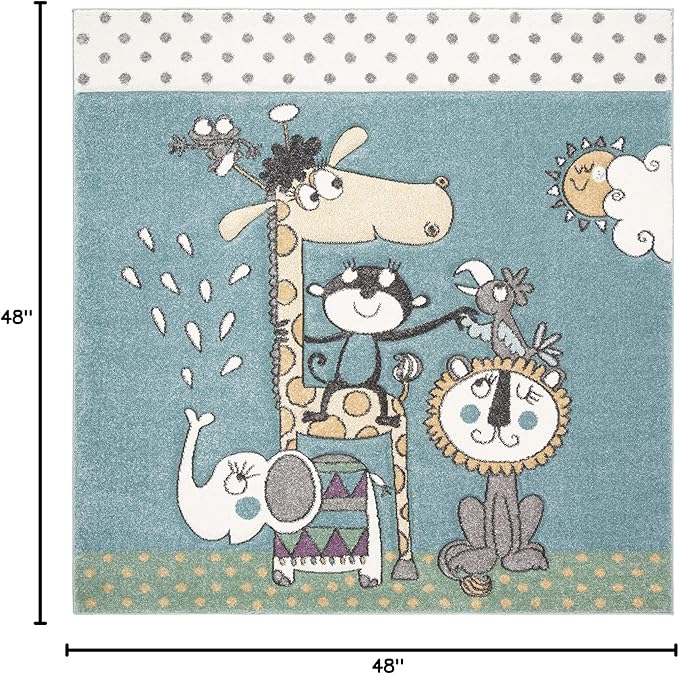SAFAVIEH Carousel Kids Collection 4' Square Ivory/Blue CRK185A Animal Non-Shedding Nursery Playroom Area Rug