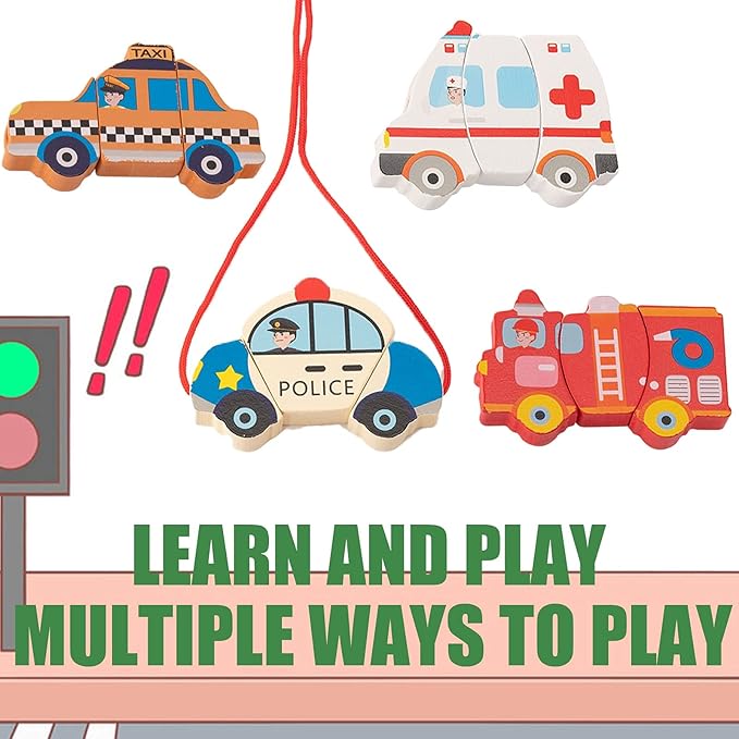 - 【Wooden Puzzles】: Size: 7.1in x 7.1in, Contain: taxi, police car, fire truck, ambulance.