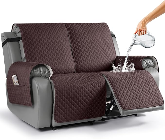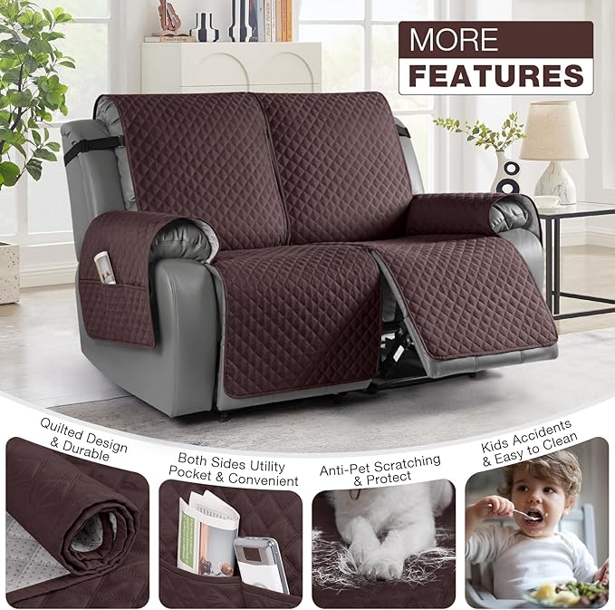 TAOCOCO Loveseat Recliner Cover Non-Slip Sofa Slipcover, Pet Cover for Loveseat Recliner with Elastic Straps, Washable Reclining Loveseat Cover Recliner Furniture Protector (2 Seater, Coffee)
