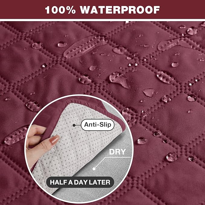 TAOCOCO Recliner Sofa Slipcover Couch Covers for 3 Cushion Couch, Pet Sofa Cover for 3 Seat Recliner Sofa, Washable Reclining Sofa Cover Furniture Protector with Elastic Straps(3 Seater, Wine)