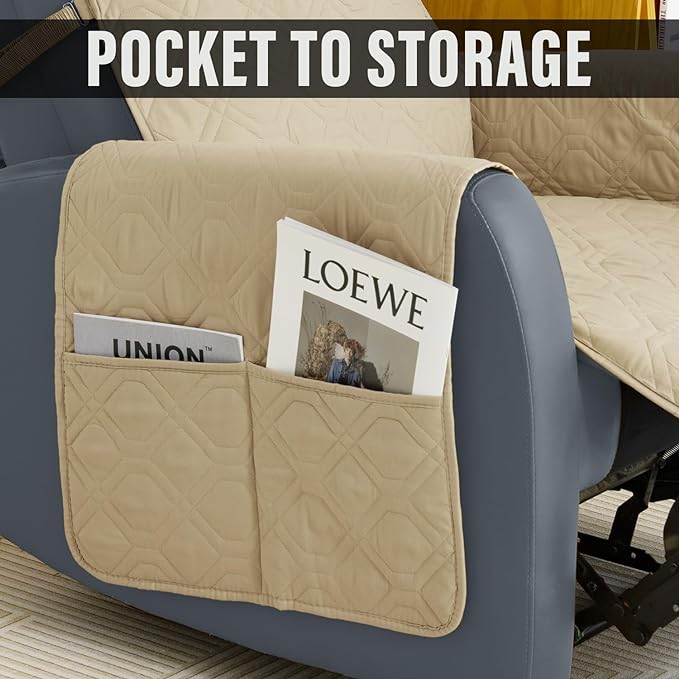Recliner Chair Covers Sofa Slipcover Non-Slip Chair Couch Cover Machine Washable Furniture Protector with Straps for Dogs (Beige, 30inch Recliner)