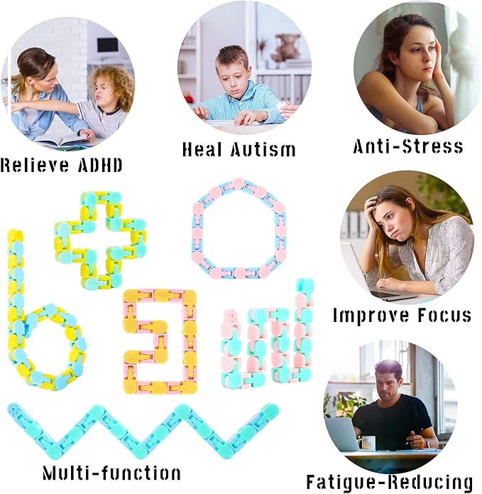 - 【Click Fidgets】: The 24 links wacky track can be flexibly rotated and locked to 5 positions,making a satisfactory clicking sound,helping you relieve stress and have unlimited fun.