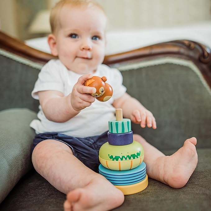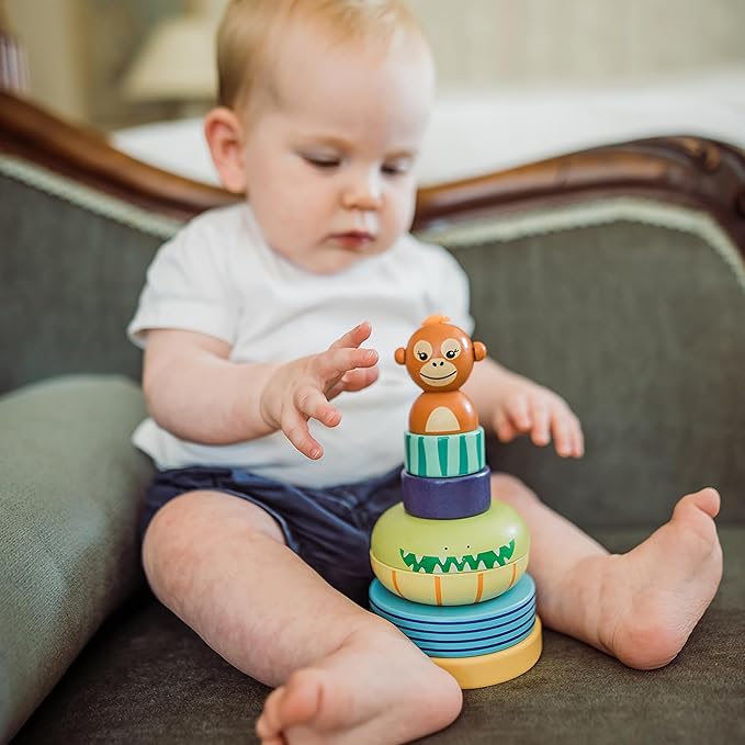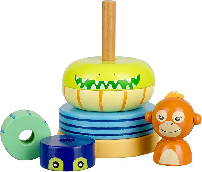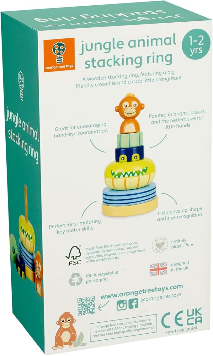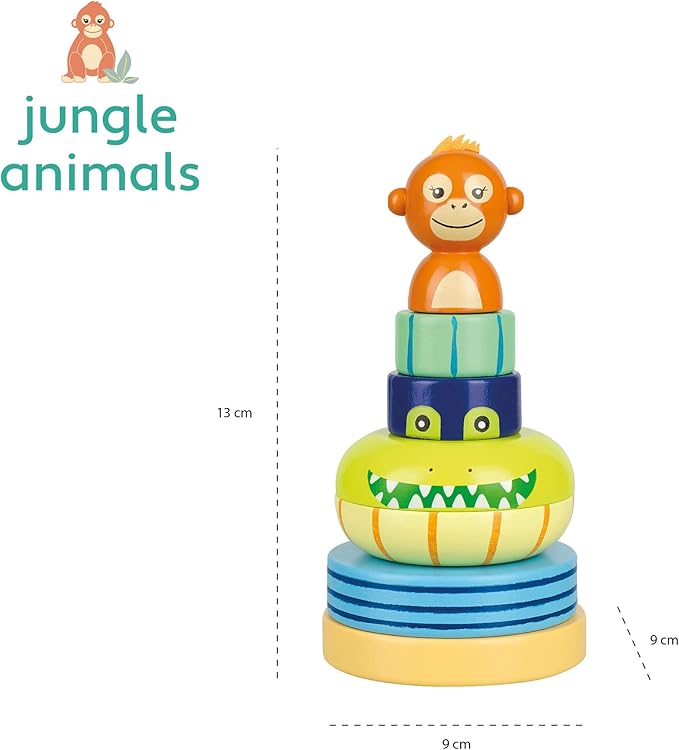 Orange Tree Toys: Stacking Ring: Jungle Animals - Wooden Colorful Stacking Puzzle Toy, Size & Motor Skills Developmental Toy, Toddler & Kids, Ages 1+