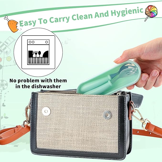 - Cutlery travel case: come with 3 sets toddler utensils set, and they come with a nice carrying case for each pair! which can keep the tableware clean, and you can put it into your bag, so that your baby utensils will still stay neat, reducing chance to contact with dirt, They are the suitable size for preschoolers .... and easy to travel- picnics, camping etc.