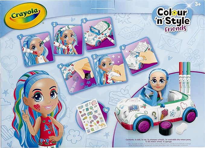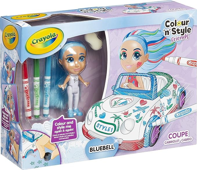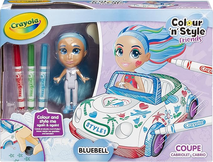 CRAYOLA Colour 'n' Style Friends: Bluebell - Coupe Playset | Colour & Style Your Own Doll, Again and Again! (Includes Magic Dry-Erase Pens) | Ideal for Kids Aged 3+