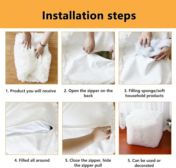 - 【Make Old Clothes into A Pouf Ottoman】--This Fur Pouf Ottoman Stool comes unstuffed, it can fill in lots of blankets, sweaters, pillows, winter clothes, plush toys that makes it become an ottoman.