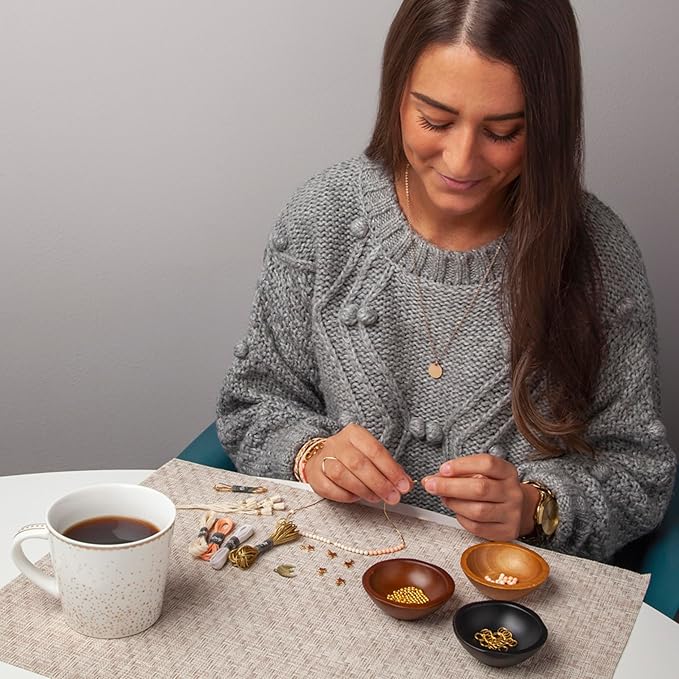 - COMES WITH EVERYTHING YOU NEED—25″ (63.5 cm) elastic cord, 1.6 yds (1.4 m) faux suede cord, 10 yds (9.1 m) cotton thread, 8 yd (7.3 m) polyester thread, 160 plastic beads, 6 metal charms, 6 thread tassels, 35 metal rings, 1 yd (.9 m) cotton ribbon, and instructions