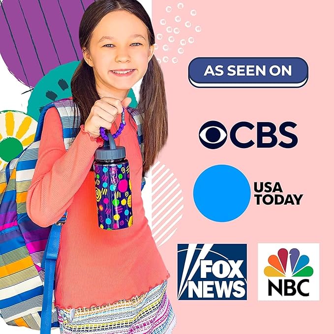 - Included in every DIY kit: 1 Tritan BPA free water bottle in grey, 1 screw-top lid with handle, 2 sheets of shiny rose gold alphabet and design stickers, 18 different colorful shrink designs that will shrink securely over the bottle (6 designs x 3 sheets of each), 2 bonus paracord bracelet spools (in grey and purple), 3 bracelet clips, full bracelet and bottle instructions.