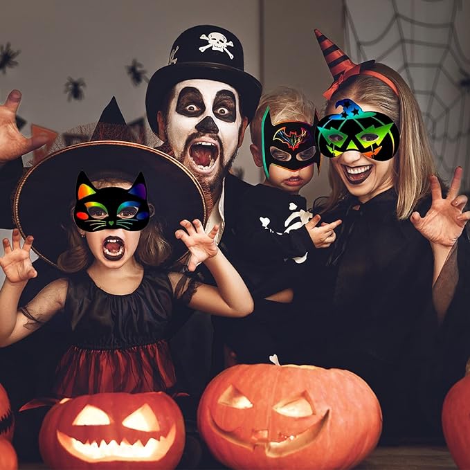- 【DIY Your Own Craft Photo Props】: Scratch masks can be used as DIY props to train your hands-on ability and color recognition ability. They can draw unique masks with their own imagination; these masks can also be given to others as Halloween gifts so that they can wear their own making Participate in the fancy dress party to make your costume more eye-catching