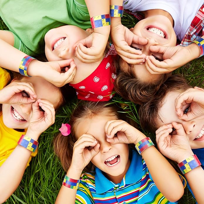 - Simple and quick to wear: just tap the bracelet on your wrist, and it will form a comfortable fit grip according to the size of your wrist, the party favor bracelets won't scratch your skin easily, you can wear them comfortably for a while; A nice addition to birthday party favors, these bracelets easily slap on and off, offering hours of fun for your favorite little ones; Sport these vibrant color brick party slap bracelets as the base for your constructed party outfit