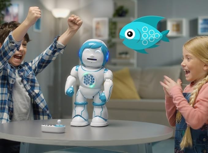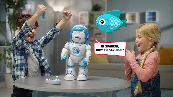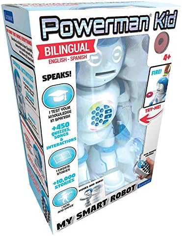 Lexibook Powerman Kid - Educational and Bilingual English/Spanish Robot - Walking Talking Dancing Singing Toy - STEM Programmable Telling Creating Stories - Quizzes Shooting Discs for Kids - ROB90US