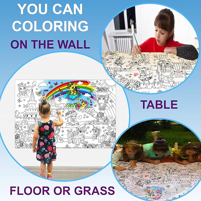 - Fun Activities - jumbo coloring poster provides hours of group play for children. Gigantic large wall coloring poster for unicorn party decorations