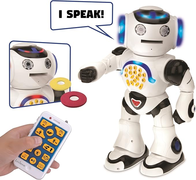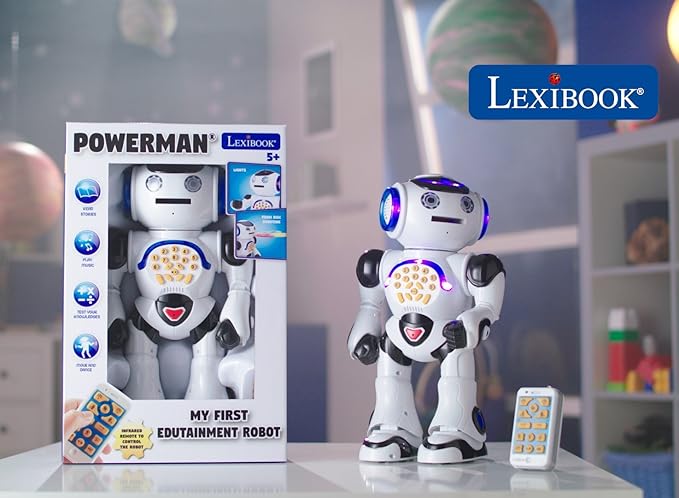 Lexibook Powerman - Remote Control Walking Talking Toy Robot, Dances, Sings, Reads Stories, Math Quiz, Shooting Discs, and Voice Mimicking, for Kids 4+ - ROB50US
