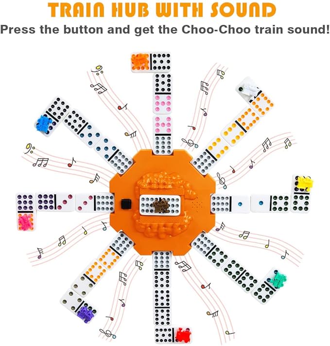Yinlo Mexican Train Dominoes Set, Hub with Real Train Sound, Double 12 Colored Dot