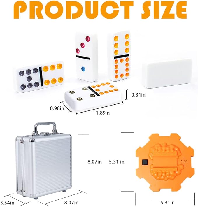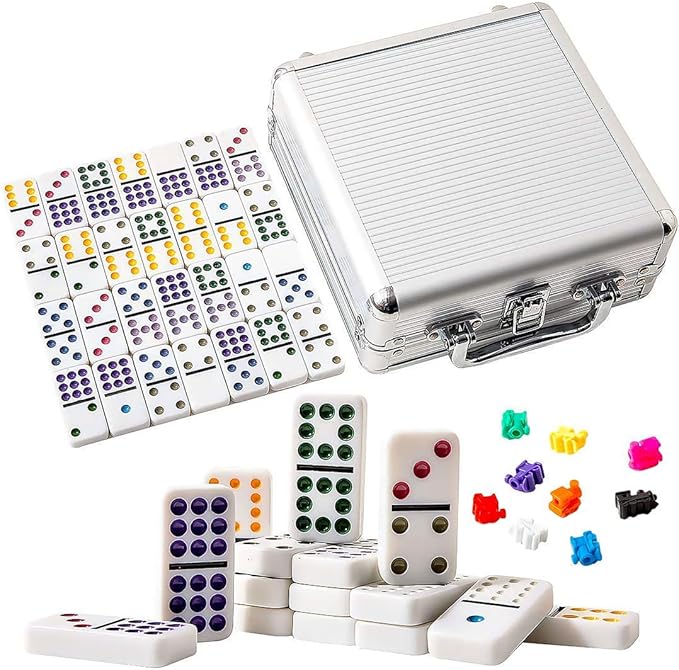 - DURABLE & COLORFUL: The standard size dominoes comes with off-white ivory tiles marked with bright dots. All the domino tiles are made of urea stone which gives a heavy solid feeling, engraved beautifully. This dominoes Mexican Train game set is a perfect gift choice in various senarios as it would bring nothing but joy to people you love.