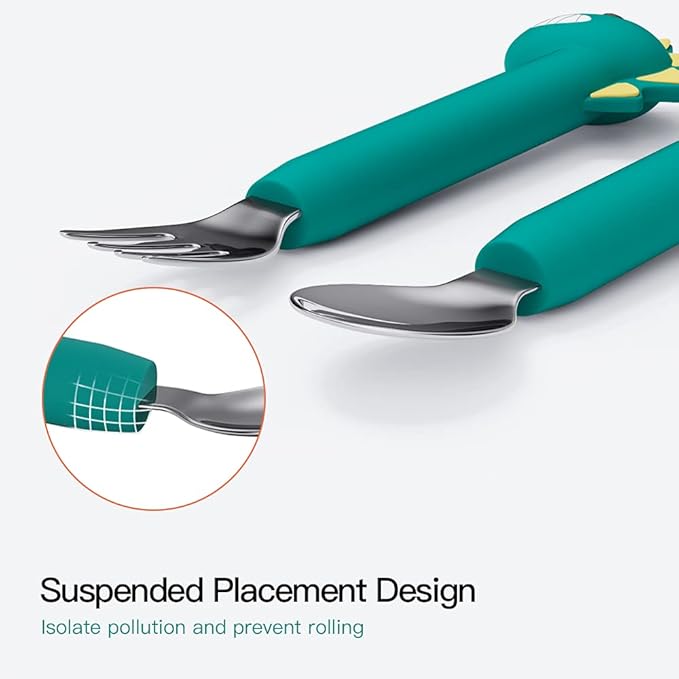 - ERGONOMIC DESIGN – The Cutlery's Ergonomic, wide handle is Covered by Silcone Soft glue, the material is soft and Non-slip which makes it Easy for little hands to grab and Manipulate, Assists Easily in Picking up Food. Ready To Feed with ease!