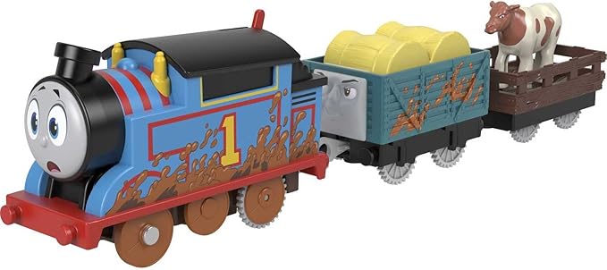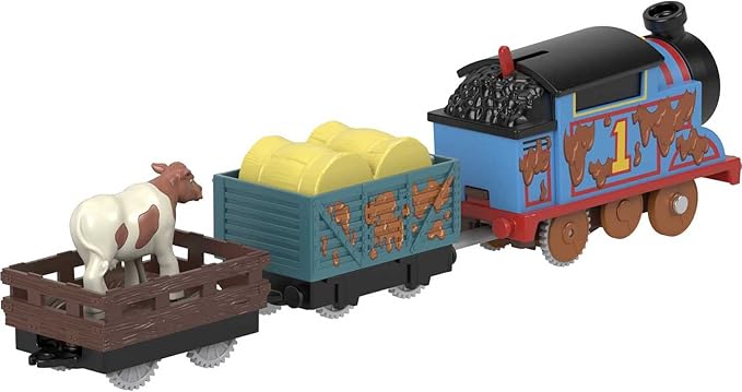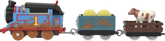 Thomas & Friends Motorized Toy Train Muddy Thomas Engine with Cargo Cars & Cow for Preschool Pretend Play Kids Ages 3+ Years