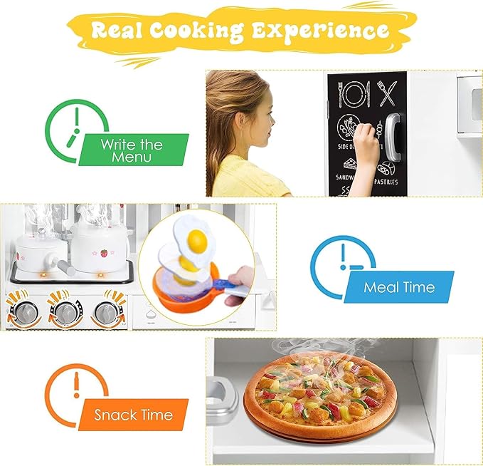 - 🧑🍳【ASTM Approved & Safe Materials】Constructed from high-quality MDF board and PP plastic, this kids kitchen set features a sturdy frame for stability and durability. All materials and paints used are ASTM approved and 100% safe for children.