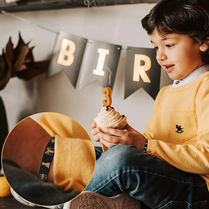 - Birthday theme set: the package contains 30 pieces of black and gold rubber bracelets, sufficient quantity to meet your party wearing and replacement needs; The stylish and delicate appearance can make your birthday party more funny and full of surprises