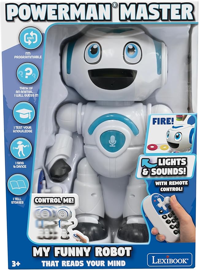 LEXiBOOK - Powerman Master Interactive Toy Robot That Reads in The Mind Toy for Kids Dancing Plays Music Animal Quiz STEM Programmable Remote Control Robot Junior - ROB25EN