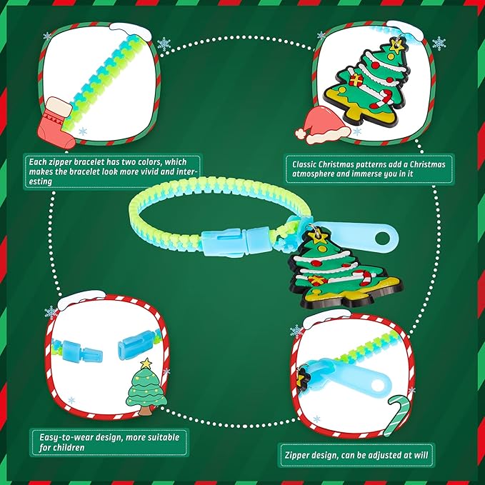 - Sufficient quantity: the package includes 24 pieces of Christmas zipper bracelets in 6 styles, which can meet most children's preferences, sufficient for kids to share with their deskmates and friends, spread Christmas greetings and wishes