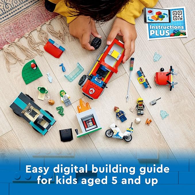 LEGO City Fire Rescue & Police Chase Building Set 60319 - Kid's Fire & Police Build, Featuring 3 Minifigures, Emergency Truck, Patrol Car, Motorcycle Toys, Gifts for Boys and Girls Age 5+ Years Old