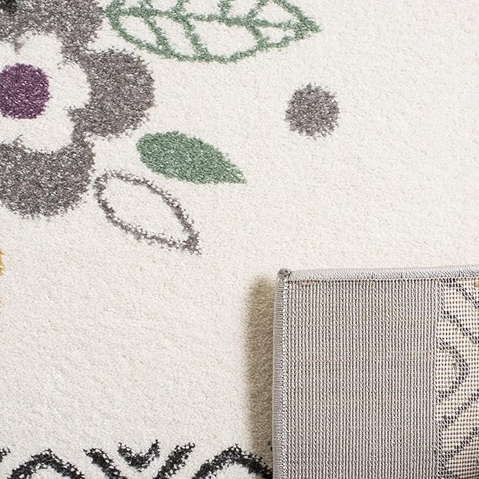 SAFAVIEH Carousel Kids Collection 4' Round Ivory/Pink CRK187A Parisian Floral Cat Non-Shedding Playroom Nursery Bedroom Area Rug