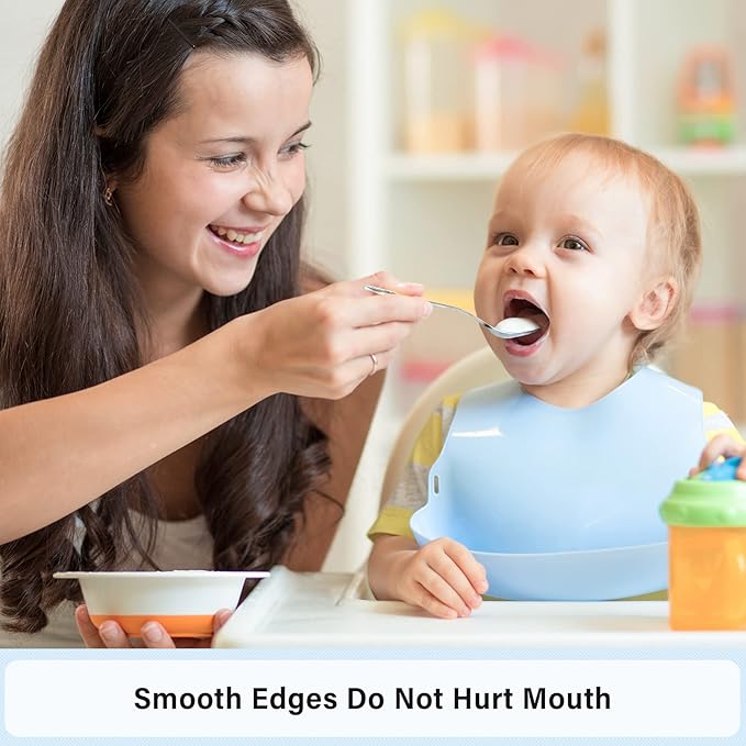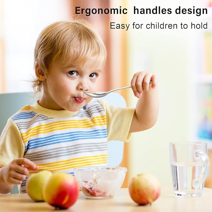 - Proper size: the stainless steel kids spoons are approx. 6.42 x 1.26 inches and the stainless steel kids forks are approx. 6.42 x 0.87 inches; The toddler utensils are in proper size which are suitable for your baby to access