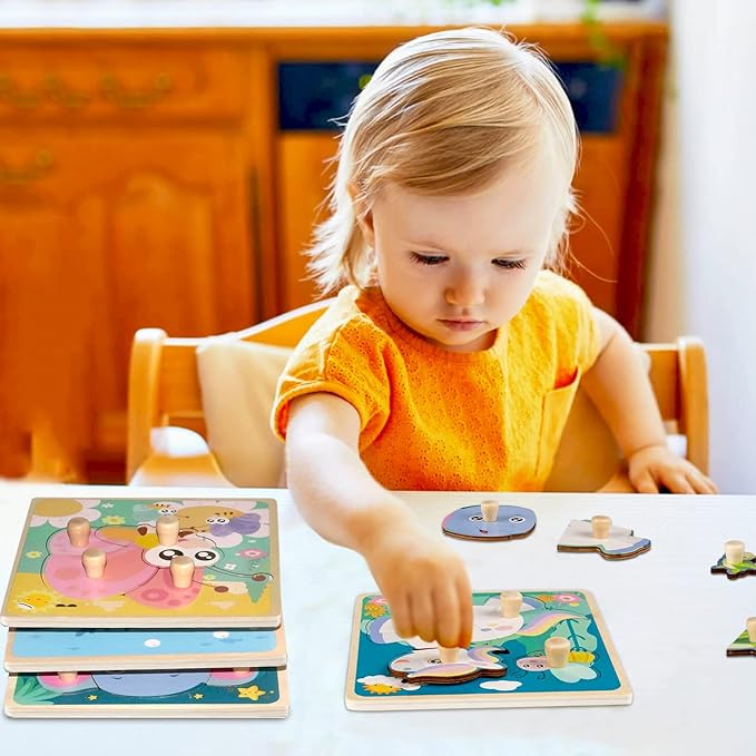 • Sturdy Wooden Toddlers Puzzles - Funsland wooden puzzle toys are specially designed for toddlers. It is use high temperature thermal transfer process to print patterns, don't worry about colour fading! The surface of the puzzle is smooth, round and without broken edges,your baby can easily and safely touch and grasp wooden puzzles with smooth edges