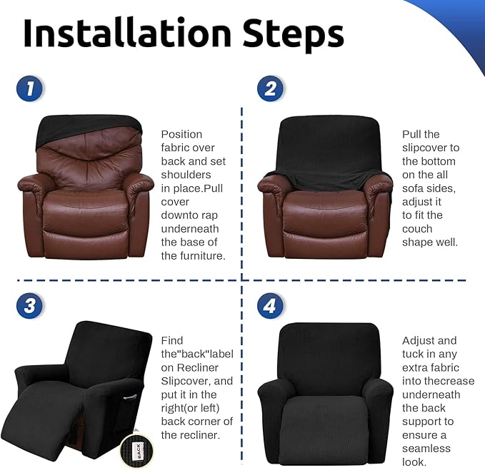 - Excellent design:Our recliner cover is a piece of installation; in the aspect of installation is more inclined to simple; attached to the whole sofa; Please follow our installation steps about 5 minutes can be installed successfully