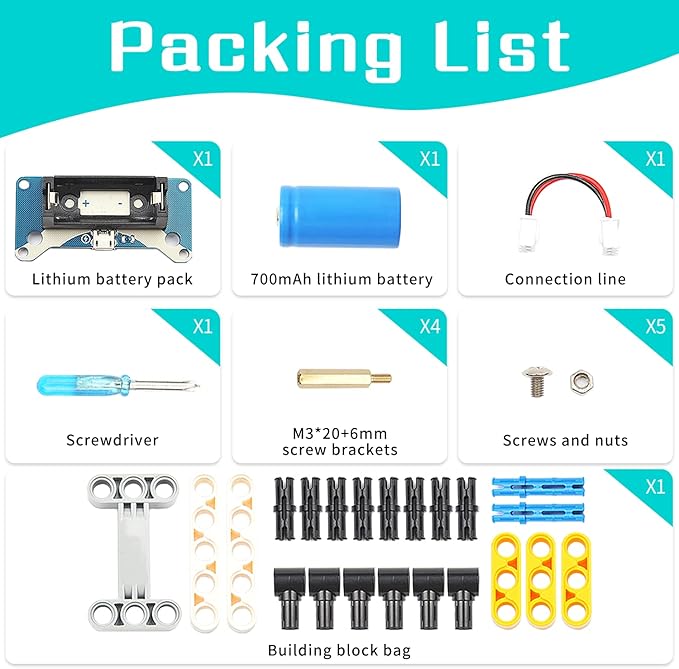 - 【3.6V Rechargeable Battery】: It can provide a stable and powerful power supply, which is more stable during the movement of the micro:bit car.