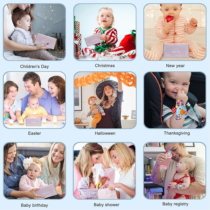 - PERFECT BABY GIFTS -- Give these Soft Baby Rattles Toys as the perfect infant toy gift. Suitable for Baby showers/Baby sprinkle/Sip & See gift/Newborn baby gift/Birthday gift/Registry gift/Easter/Halloween/Thanksgiving/Christmas/Holiday gift/Christening gift/'Just because'gift.