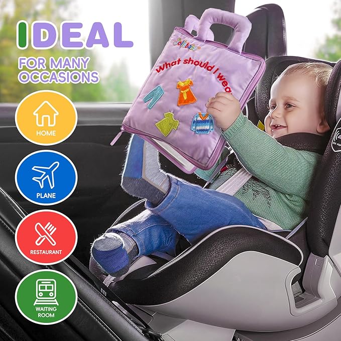 - Travel Toys: Car & airplane travel toys to keep your kids busy on long journeys. Early educational stimulation soft books for babies makes the travelling be full of challenges and quietness. Portable zipper handbag design to keep your baby company everywhere.