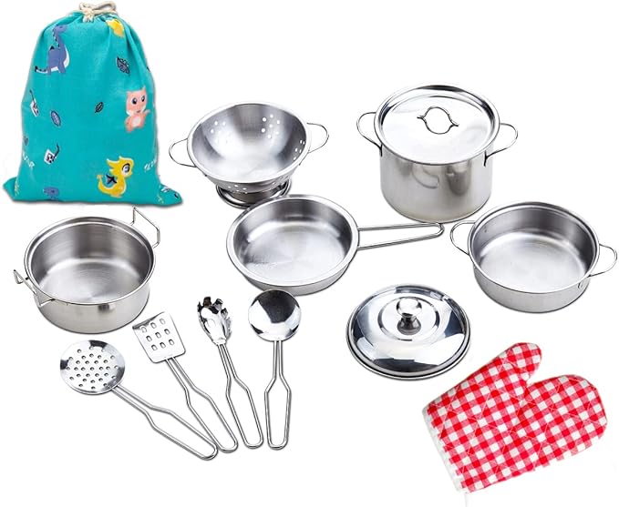 - [Ideal Gift] - The stainless steel pot & pan palyset is a super value pack for girl and boy kids gift. An ideal gift for boys, girls for holidays, birthday party or festival (Christmas, Halloween Thanksgiving, New Year).