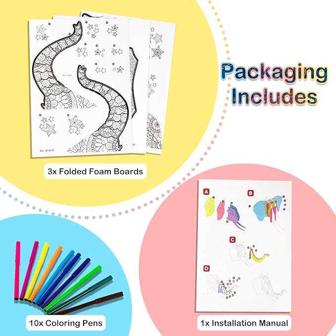 - 🐘🎁Easy Use - Just color and assemble, then you will get your own 3D elephant puzzles, no tools or glue is required; Younger kids may need help from adults