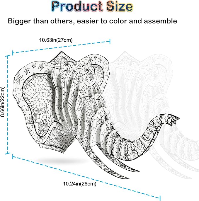 - 🐘🎁Bigger Size - 10.63 x 10.24 x 8.66 inches, bigger than 90% of the coloring puzzles on the market(just 6 x 5 x 2 inches), easier to color and assemble