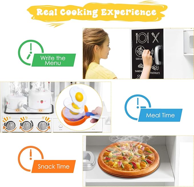 - đ˛ăPerfect Gift for Your Little Oneă: This kitchen toy set is designed for children ages three and up to become more active and exercise their hands-on skills. It is the perfect gift for your child's birthday, Christmas! Children can not only cook according to their imagination, but also play with their parents or partners.
