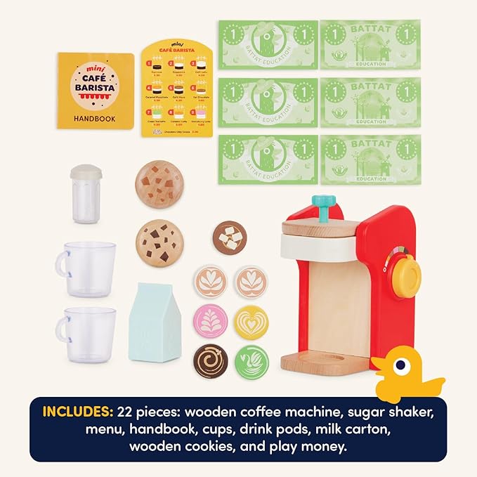 Battat Education – Wooden Barista Playset – Toy Coffee Maker & Accessories with Realistic Sounds(22 Pieces) – Pretend Play Toy – Play Kitchen Toys – 2 Years + – Mini Barista